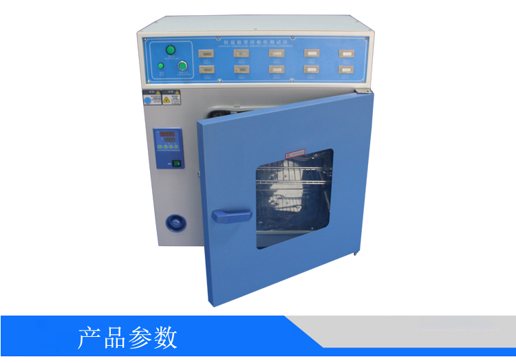 按照GB 4851(压敏胶粘带持粘性试验方法)、贴膏剂黏附力测定方法标准设计制造,适用于压敏胶粘带、不干胶、贴膏剂、热溶胶等产品进行持粘性测试试验。