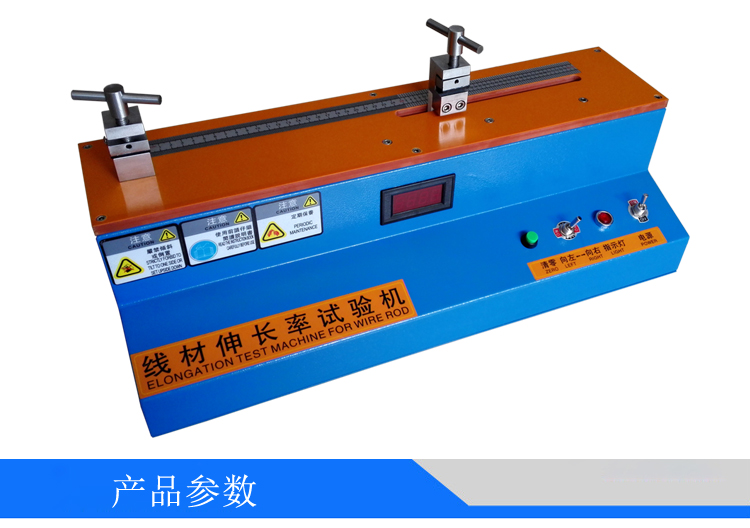 线材伸长率试验机适合于铜、铝包线各种线材及铜丝、铝丝、铝镁合金丝、铁丝各种金属材料伸长率测试。本机采用高效率内循环丝杆和定速电机组成的机械传动系统,带动活动夹具以定速产生左右位移,使夹紧的试件在拉力作用下逐渐伸长直至拉断,自动显示试件的伸长率百分数。本机符合符合UL、CSA、GB、ASTM、VDE、IEC等试验标准。